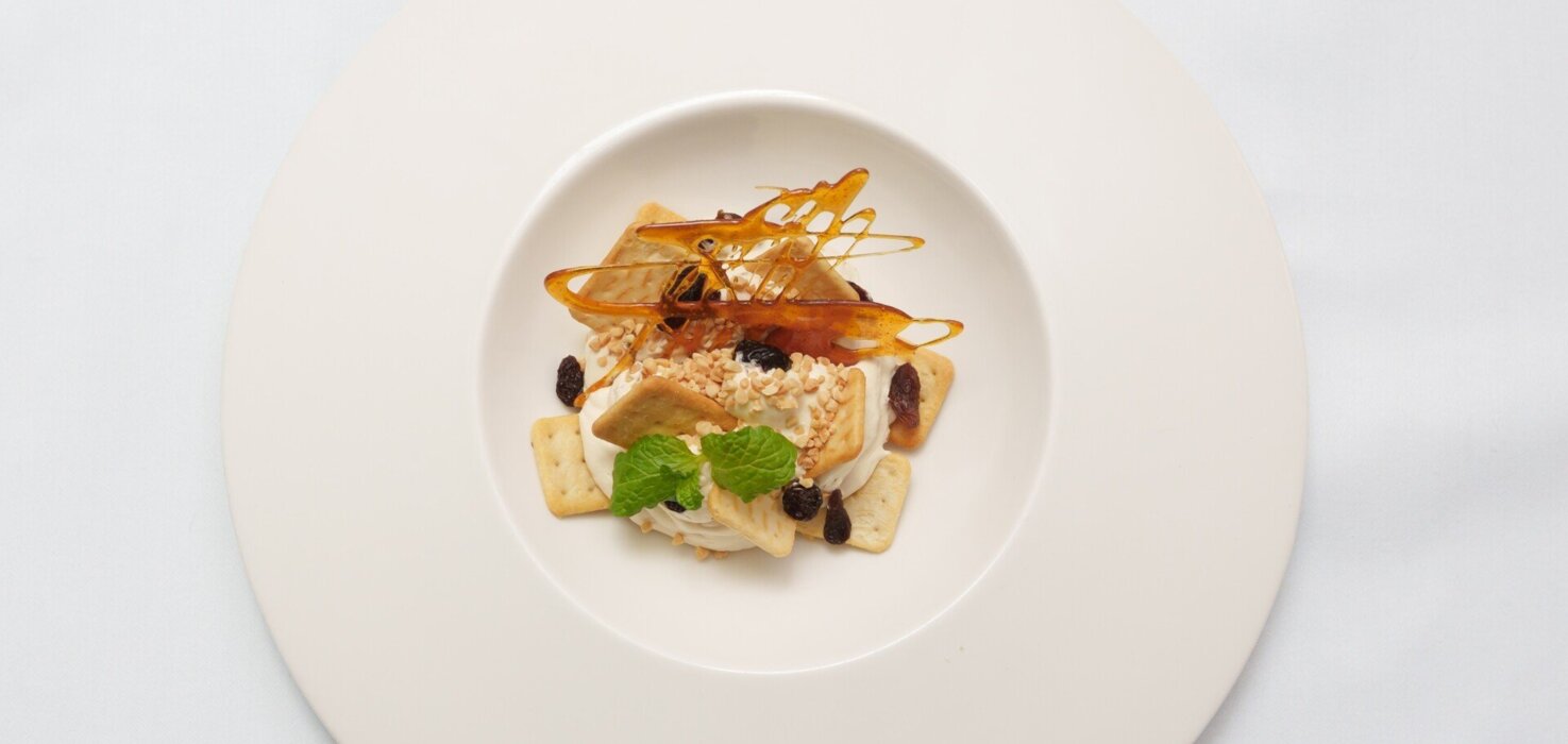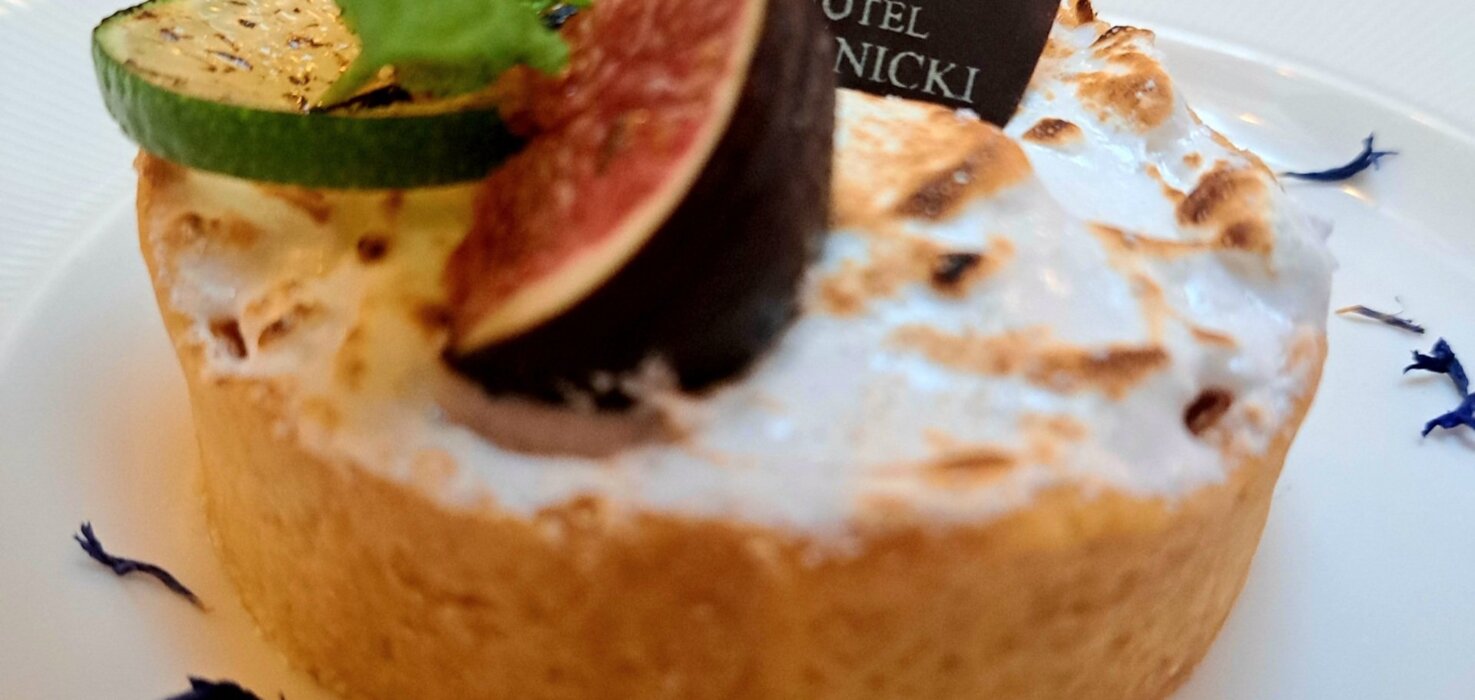 Suflet czekoladowy, bita śmietana, żel z wiśni, owoce sezonowe