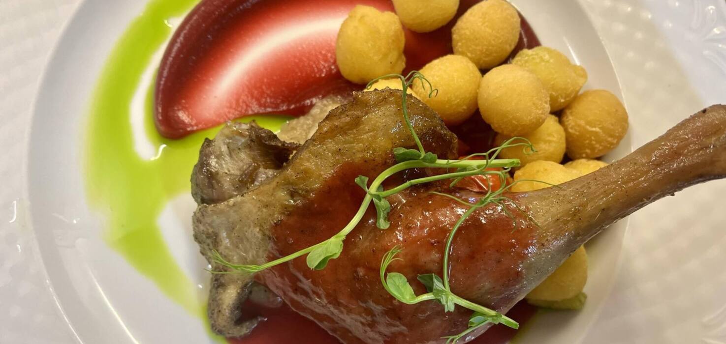 Biodrówka jagnięca pieczona z rozmarynem, potatki ziołowe, grillowane warzywa